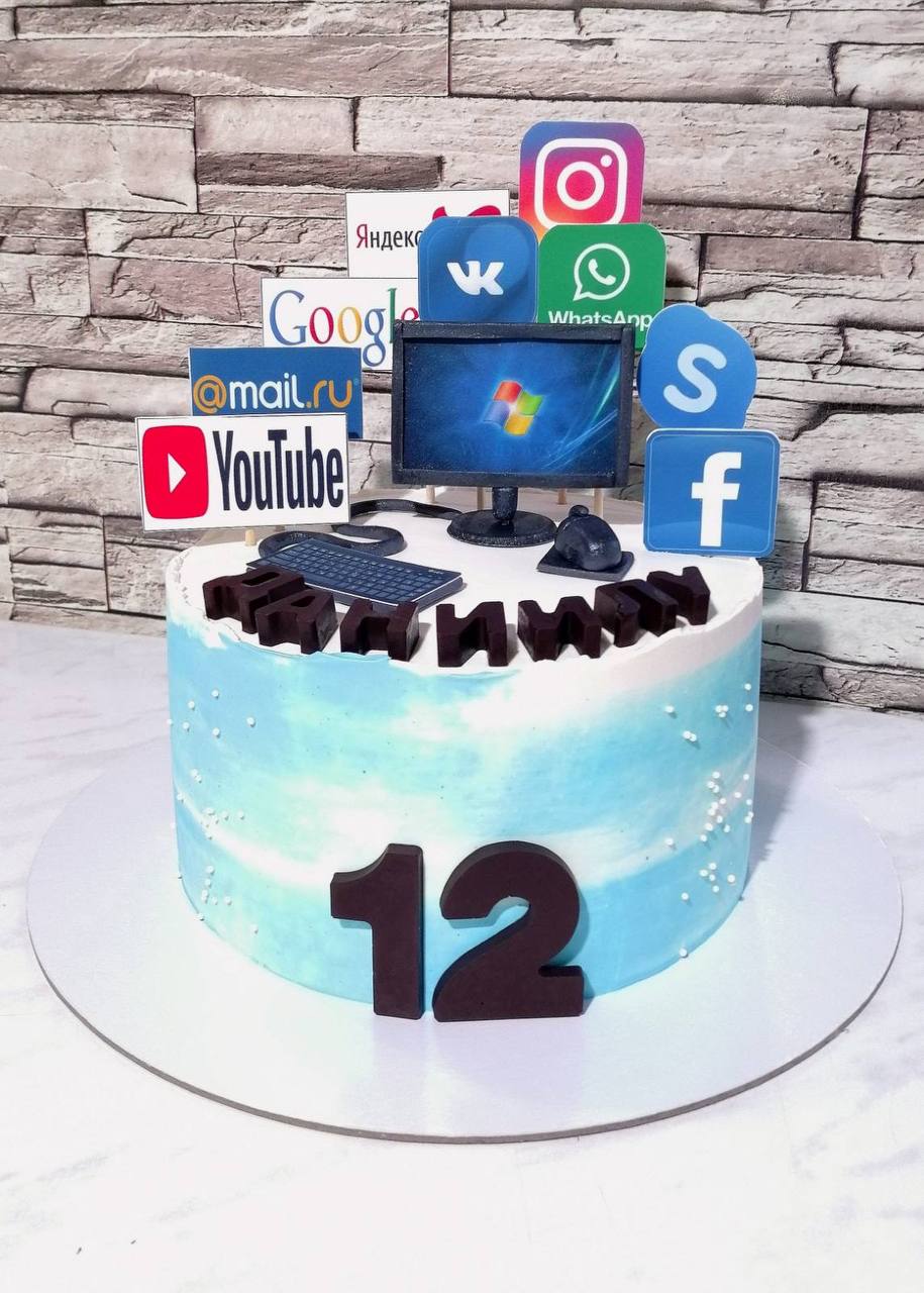 Торт украшен яркими элементами с символикой популярных социальных сетей. Он станет настоящим украшением стола и подарит незабываемые впечатления.