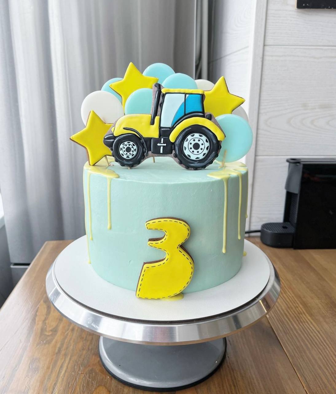 Кондитерское изделие представляет собой красочный жёлтый трактор, который сразу же привлекает внимание своим правдоподобным исполнением. Каждая деталь трактора проработана с особой тщательностью, что делает его похожим на настоящую игрушку.